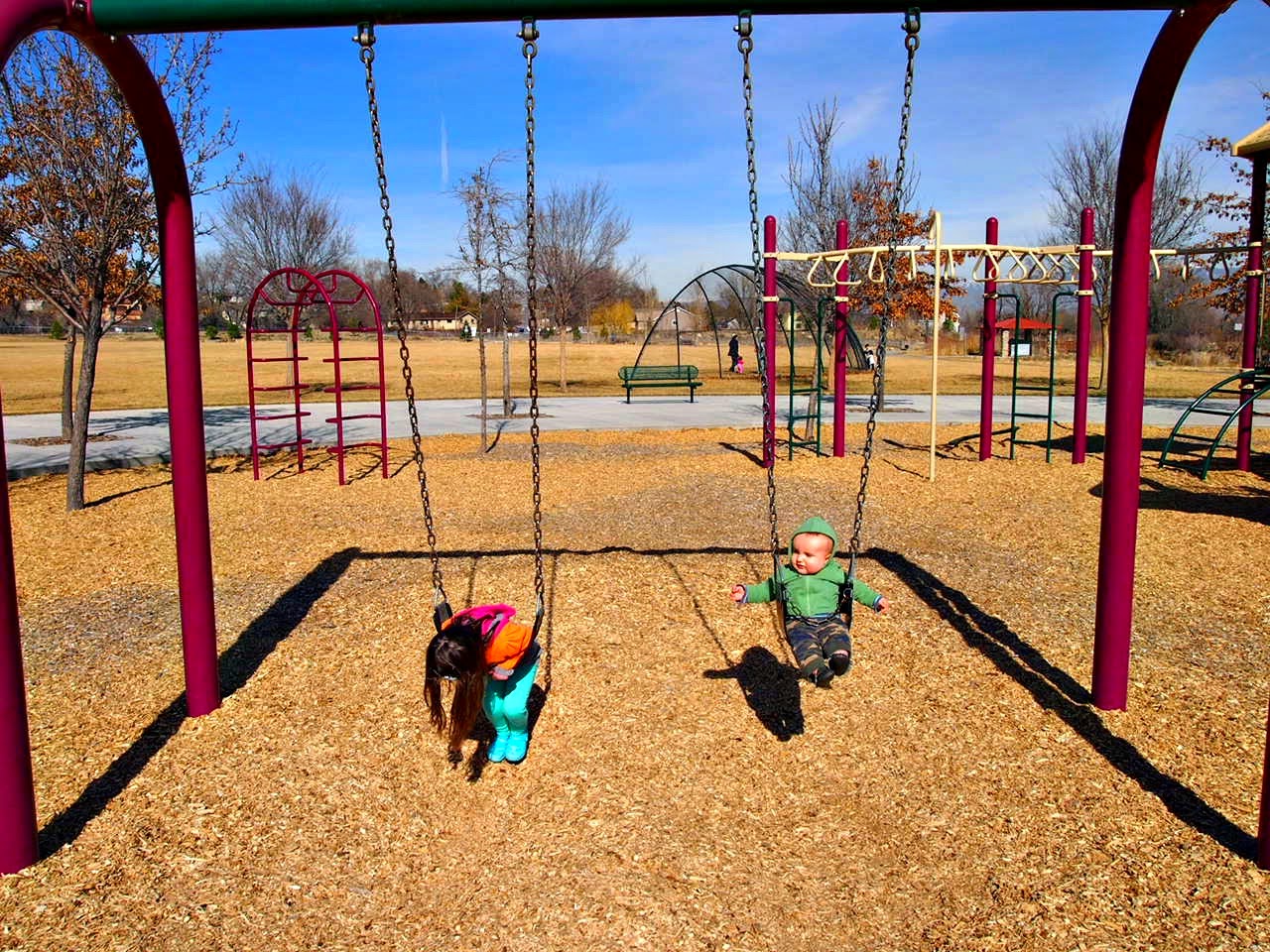 Linc got to ride in a park swing for the first time, and I took him down a couple of slides, too. He's so heavy, though, that I then put him in his stroller and walked around the perimeter of the playground while Aspen played. I can't lug him around much.